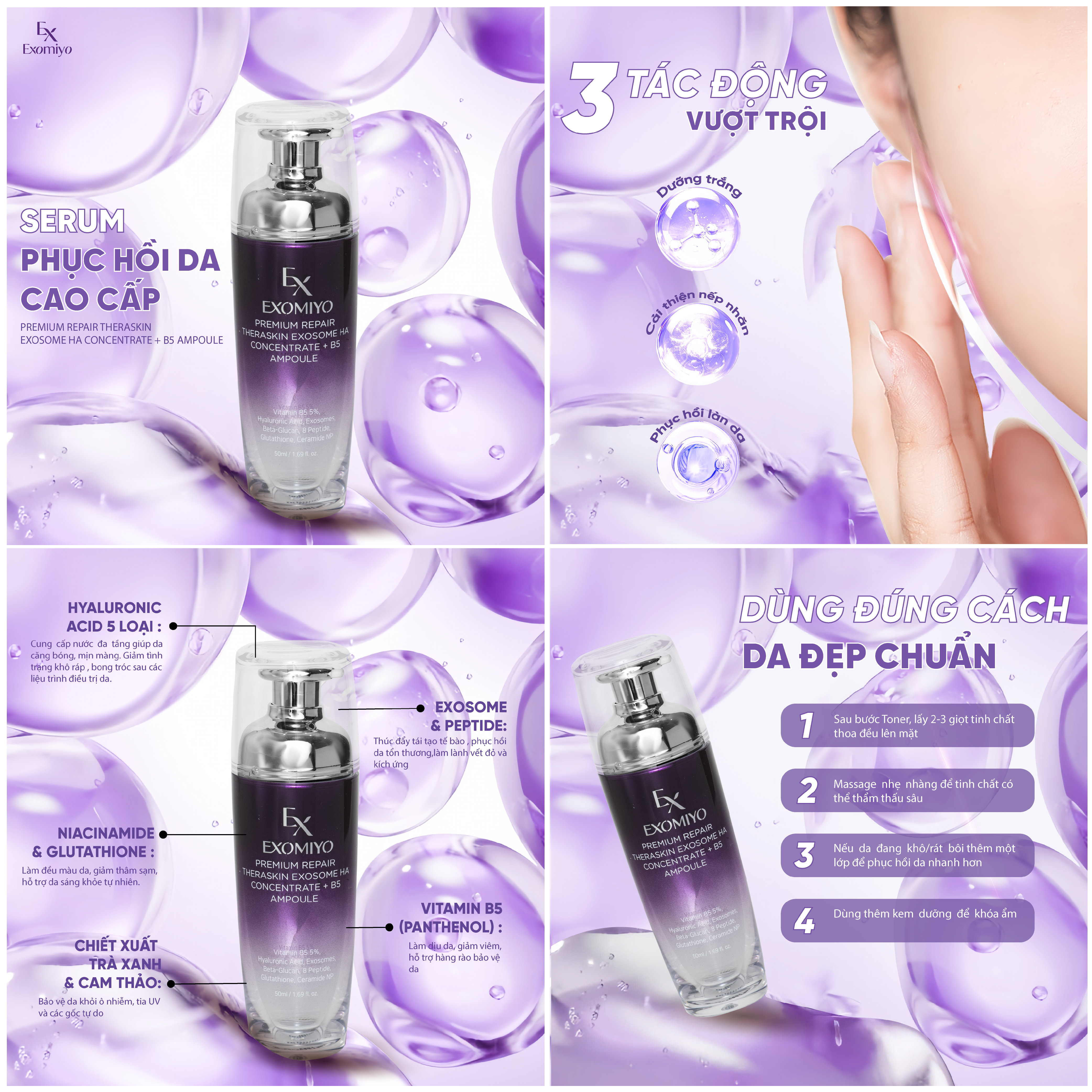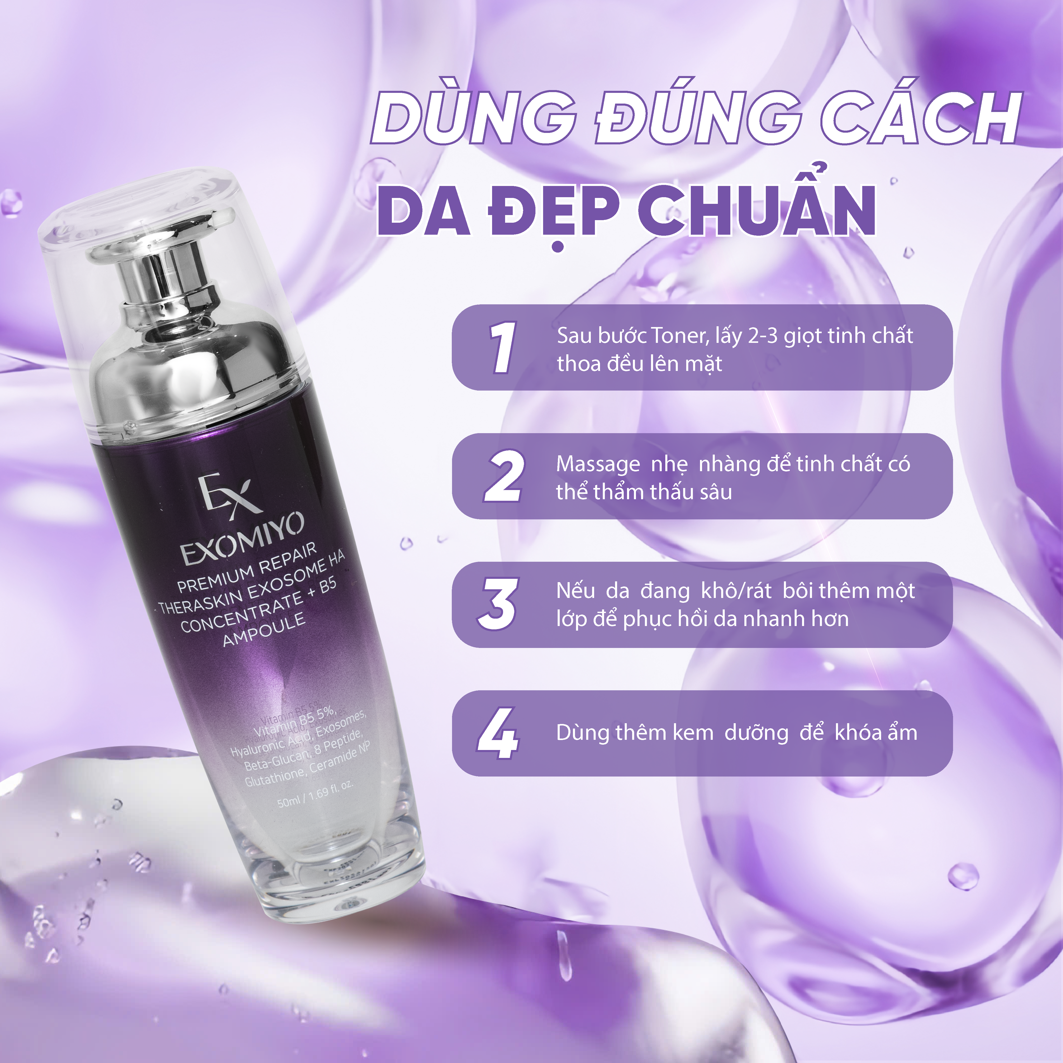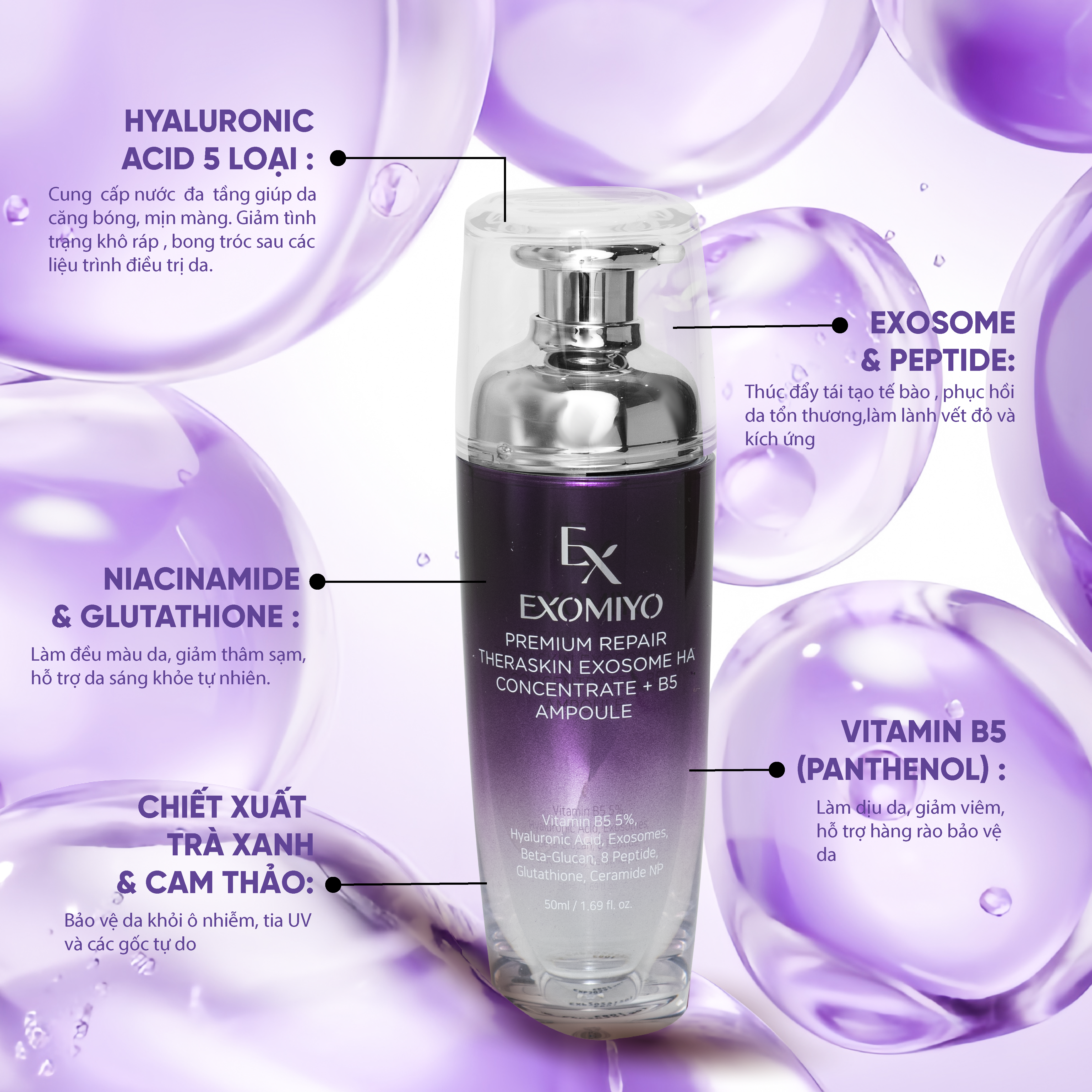 Ampoule Exosome HA – B5 phục hồi căng bóng da cao cấp Exomiyo Premium Repair Theraskin Exosome HA Concentrate + B5 Ampoule