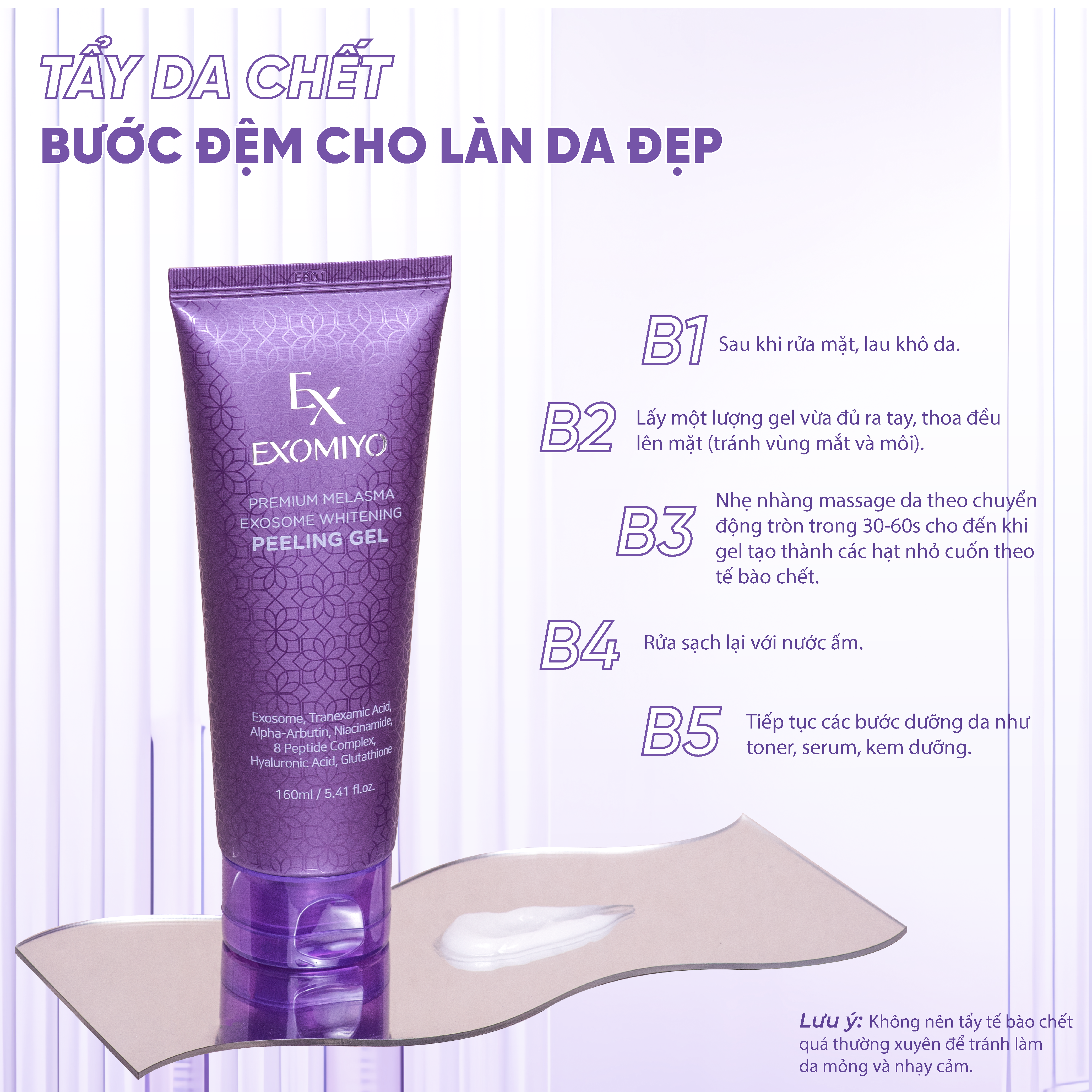 Lưu ý: Không nên tẩy tế bào chết quá thường xuyên để tránh làm da mỏng và nhạy cảm.
