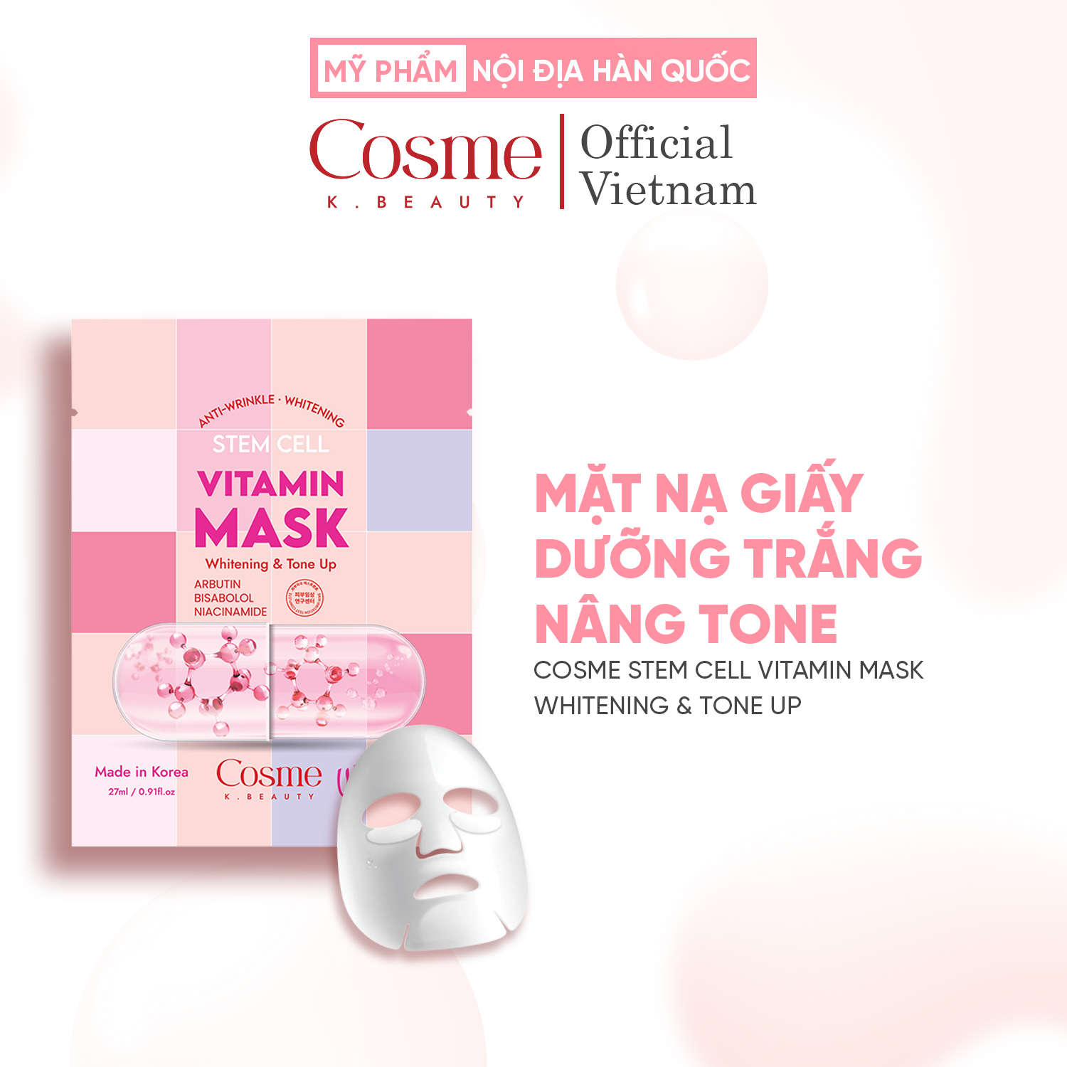 Mặt nạ giấy cao cấp dưỡng trắng – chống nhăn da, cấp ẩm sâu.