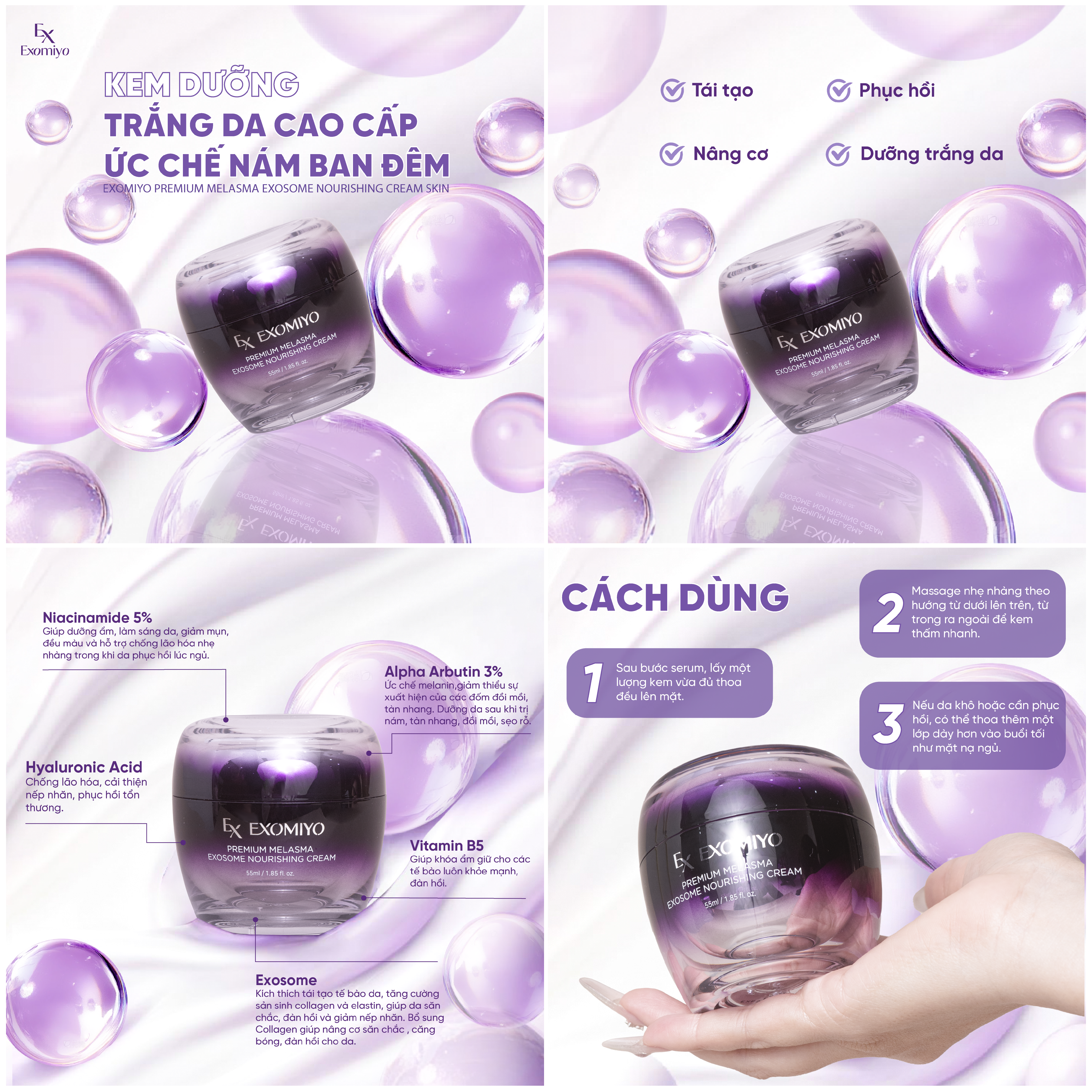 KEM DƯỠNG ẨM EXOSOME CĂNG BÓNG DA – ỨC CHẾ NÁM CAO CẤP Exomiyo Premium Melasma Exosome Nourishing Cream