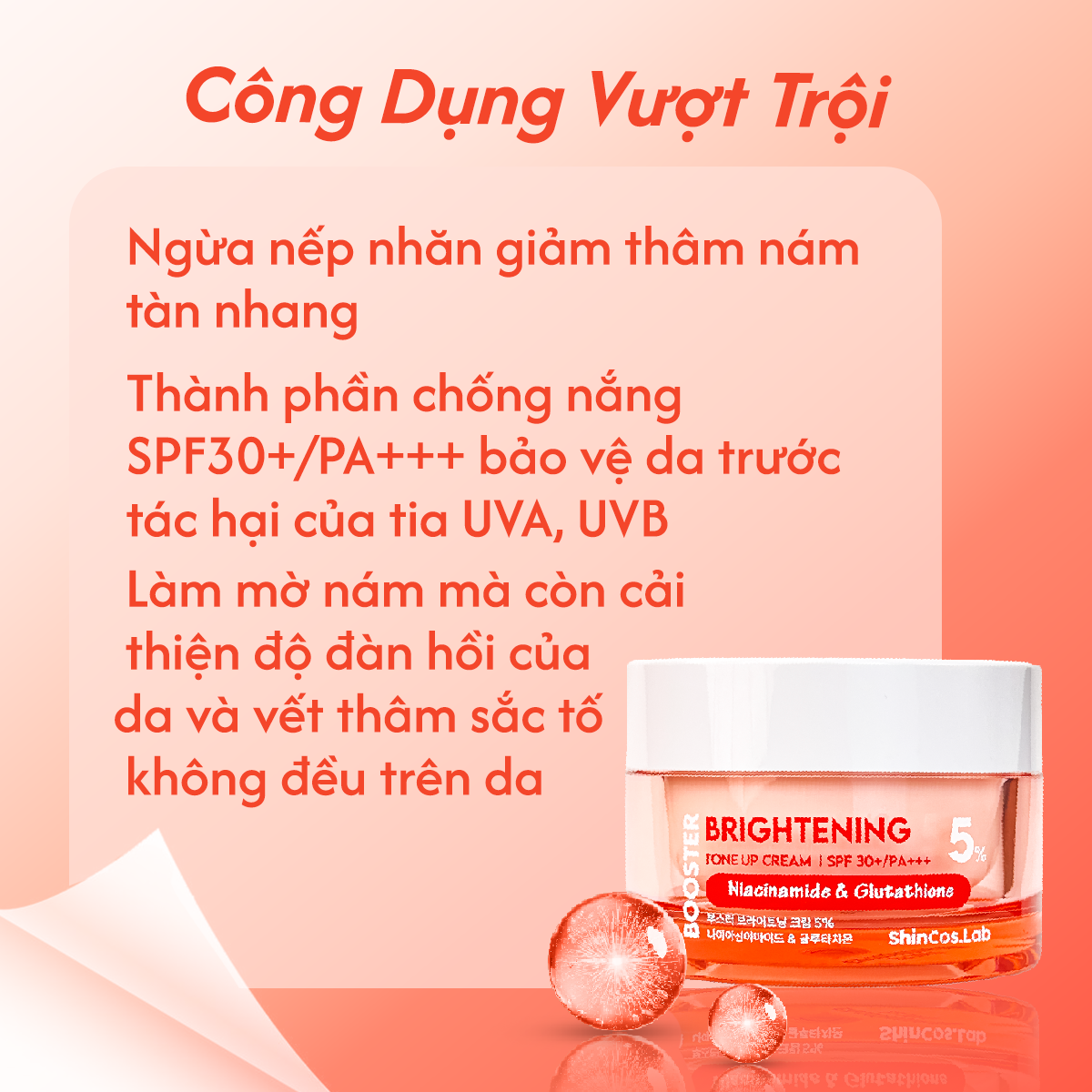 KEM ỨC CHẾ NÁM BAN NGÀY TRẮNG DA – NÂNG TONE – PHỤC HỒI SPF 30+/PA+++ SHINCOS.LAB BOOSTER BRIGHTENING TONE UP CREAM SPF 30+/PA+++