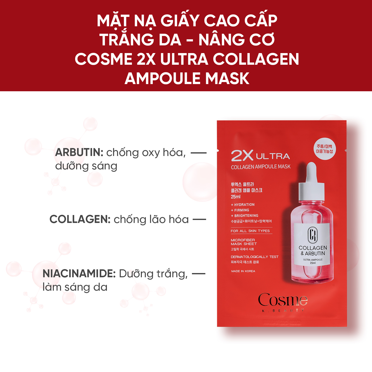 Hộp 10 mặt nạ cao cấp COSME 2X Ultra Collagen Ampoule Mask