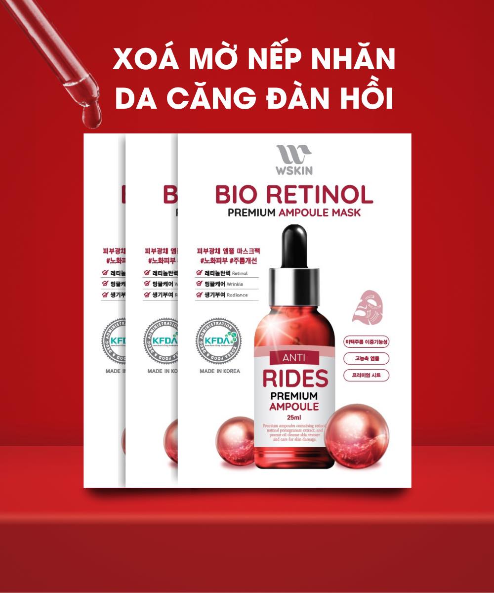 Hộp 10 mặt nạ cao cấp giảm nhăn dưỡng trắng WSKIN Bio Retinol Premium Ampoule Mask
