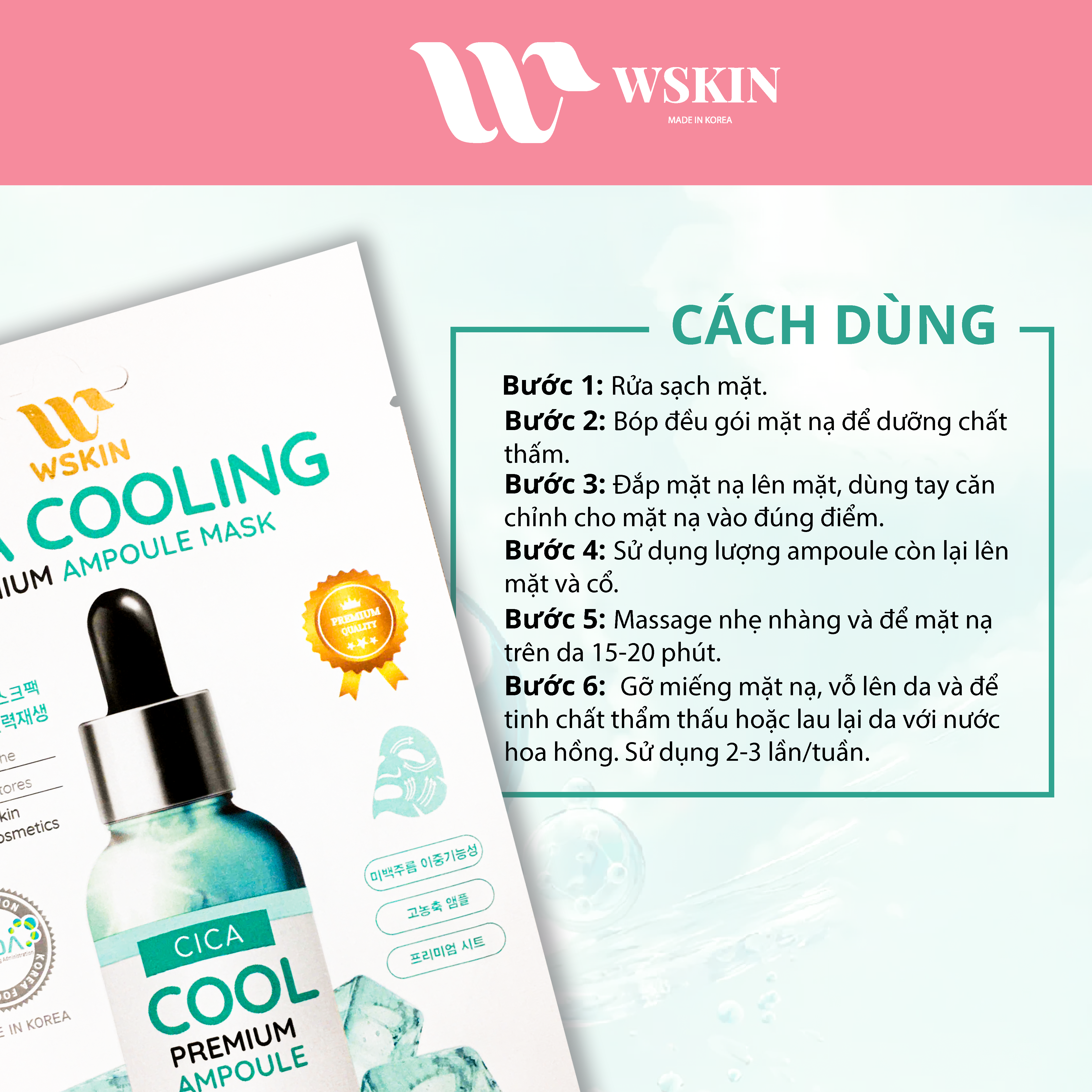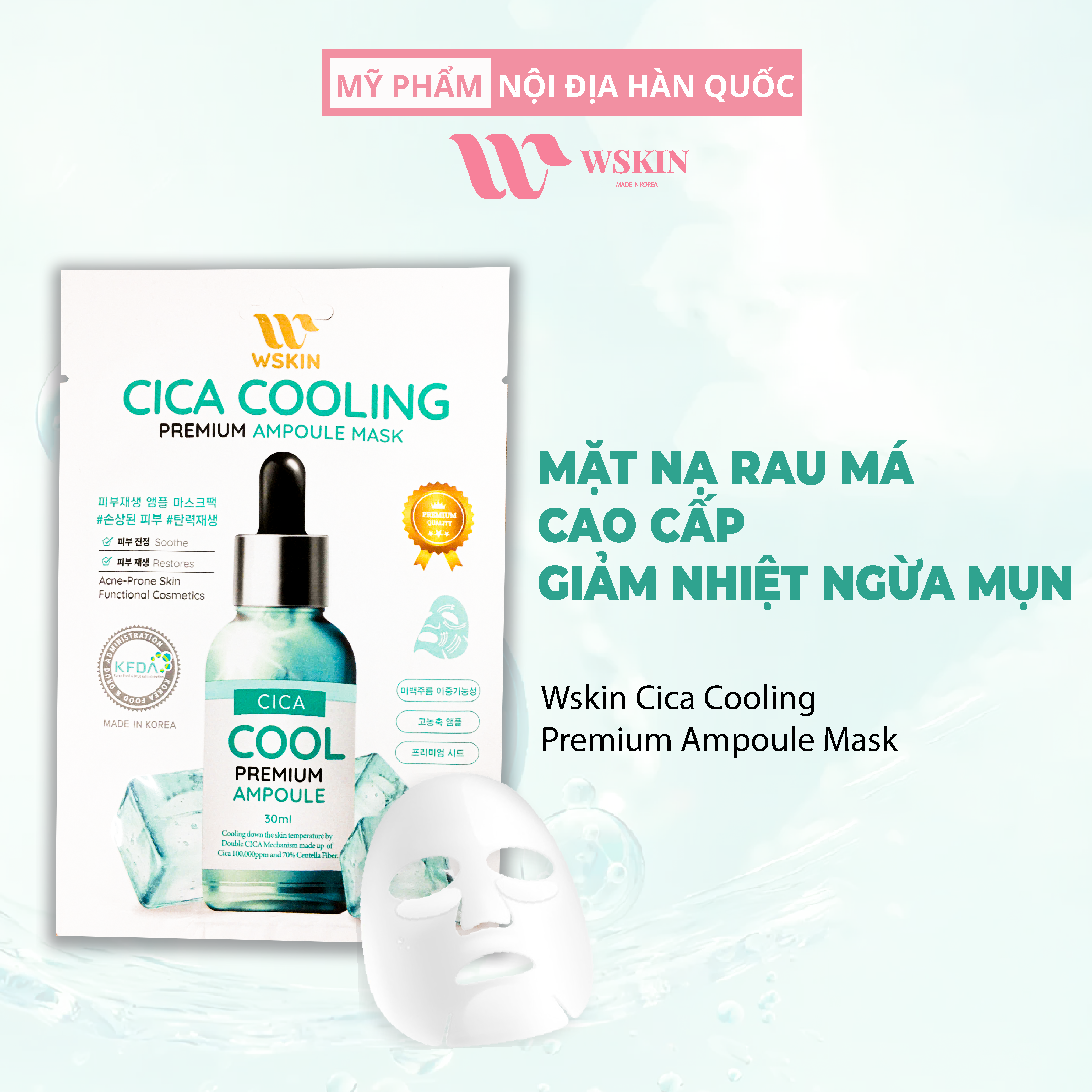 MẶT NẠ CAO CÁP RAU MÁ GIẢM NHIỆT NGỪA MỤN WSKIN CICA COOLING PREMIUM AMPOULE MASK