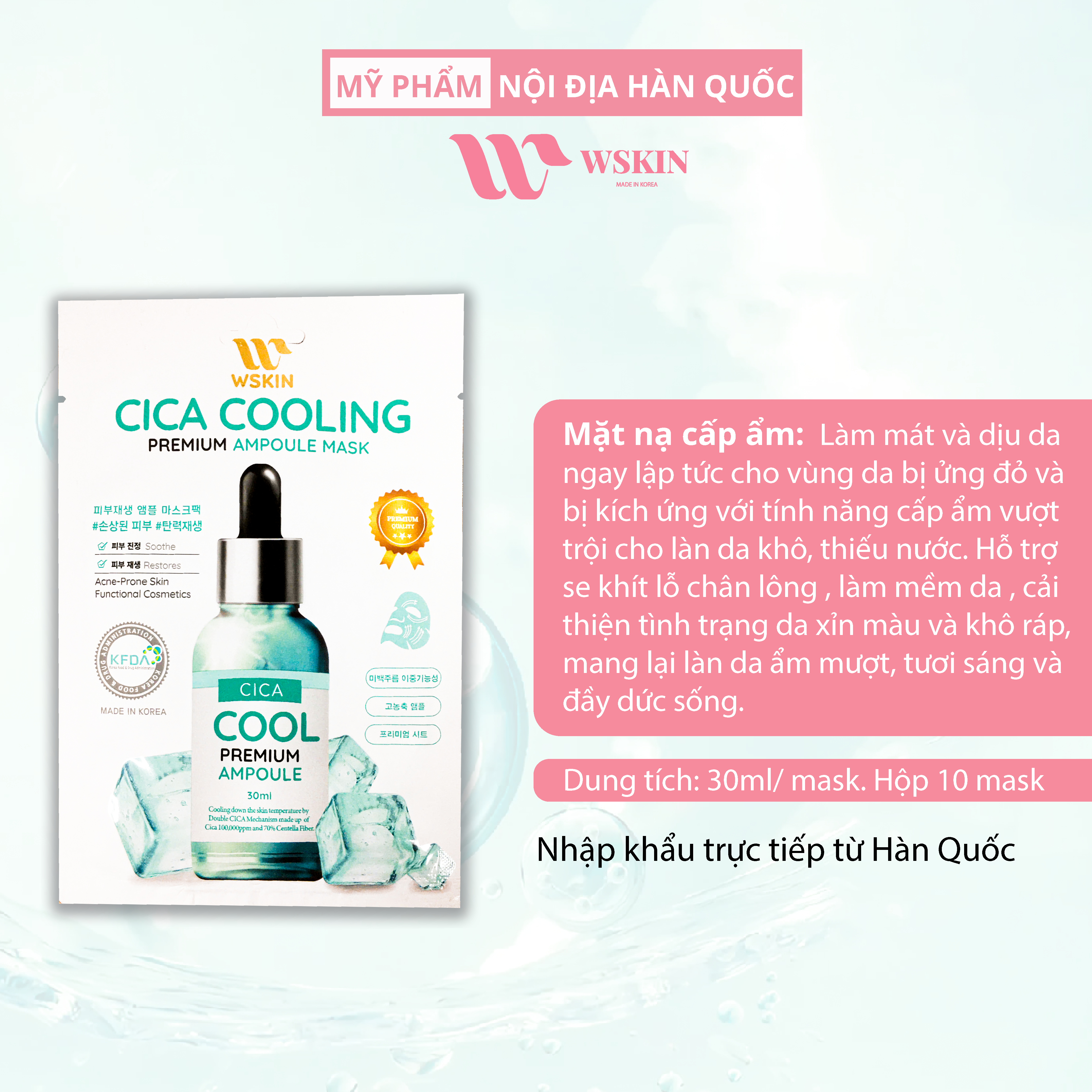 MẶT NẠ CAO CẤP RAU MÁ GIẢM NHIỆT NGỪA MỤN WSKIN CICA COOLING PREMIUM AMPOULE MASK