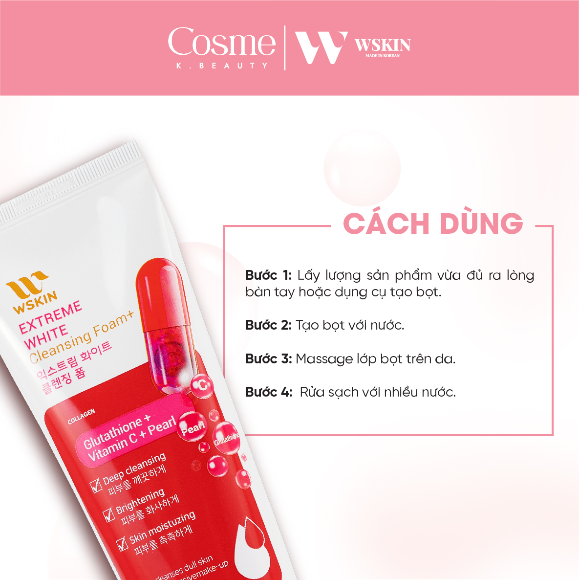 Chi tiết: Sữa rửa mặt WSKIN Extreme White Glutathione + Vitamin C + Ngọc trai