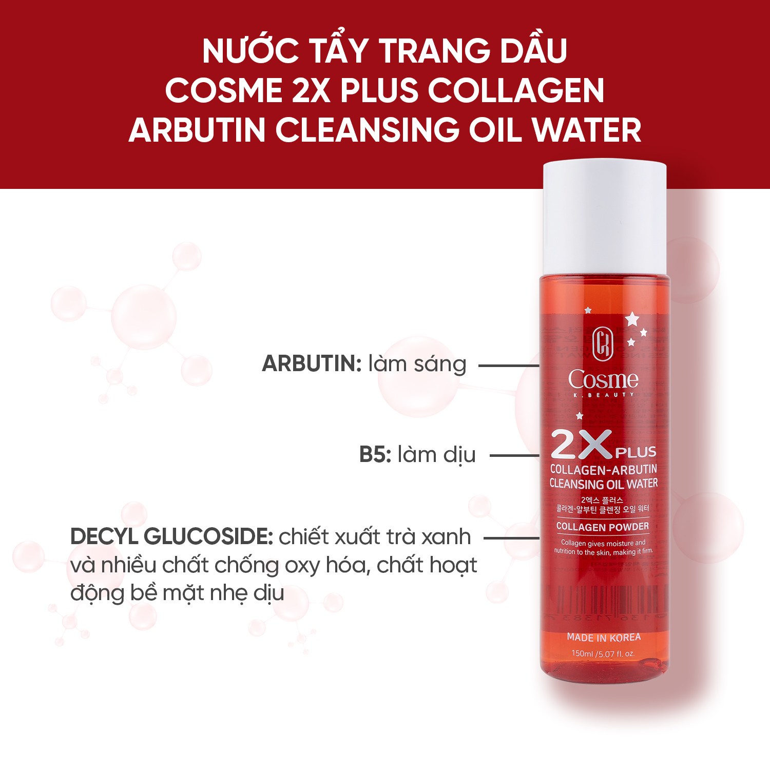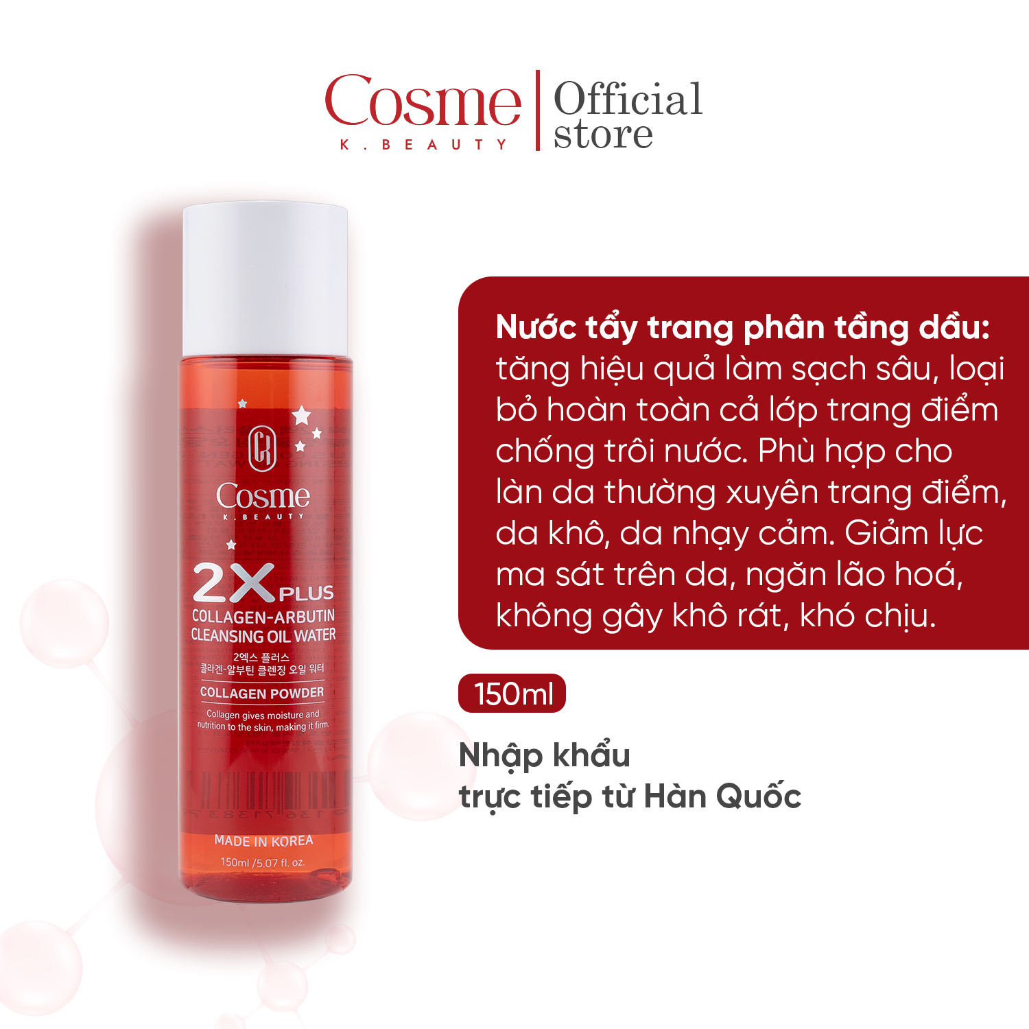 Nước tẩy trang dầu COSME 2X Plus Collagen – Arbutin Cleansing Oil Water