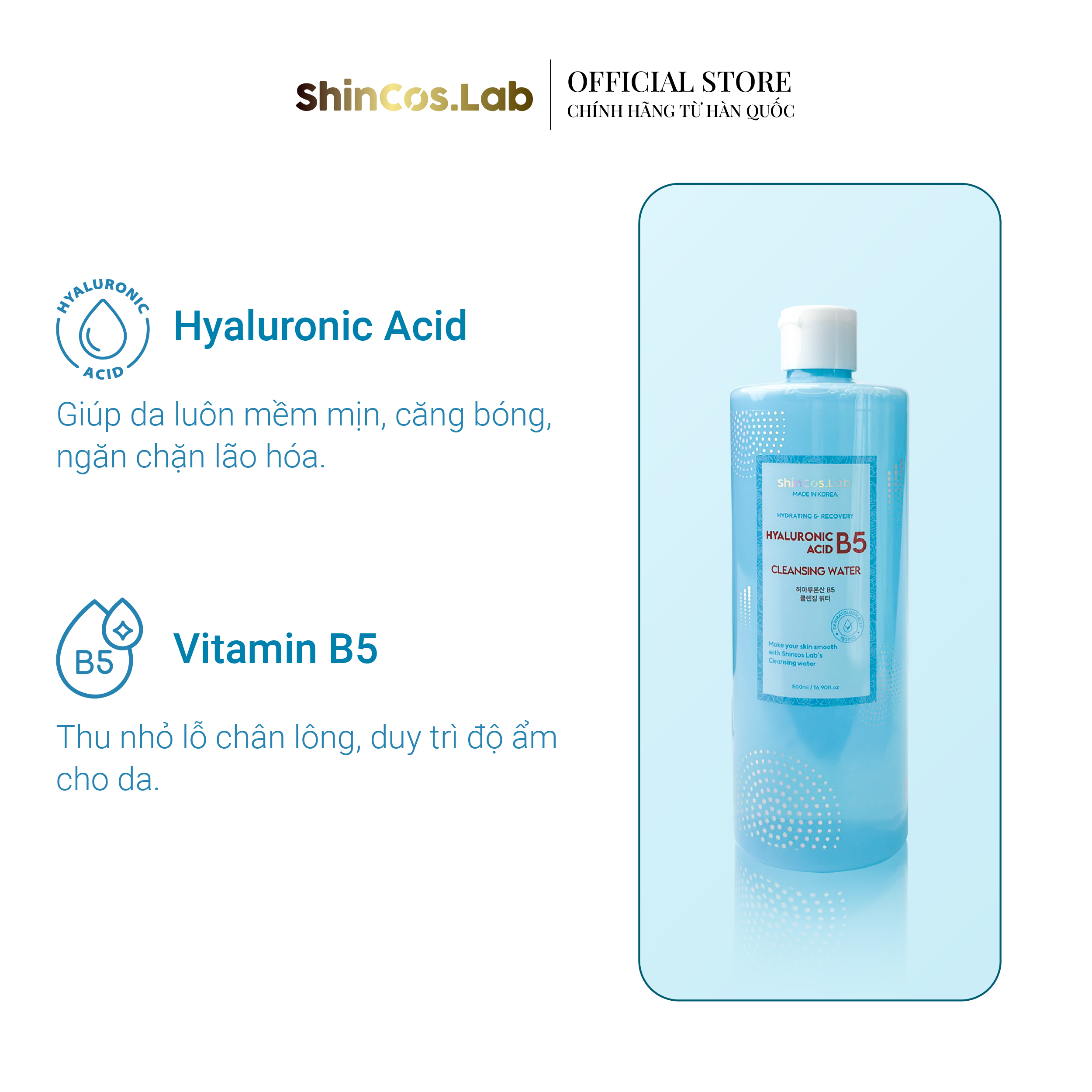 Nước tẩy trang thuần chay dưỡng ẩm phục hồi SHINCOS.LAB HA B5 Cleansing Water