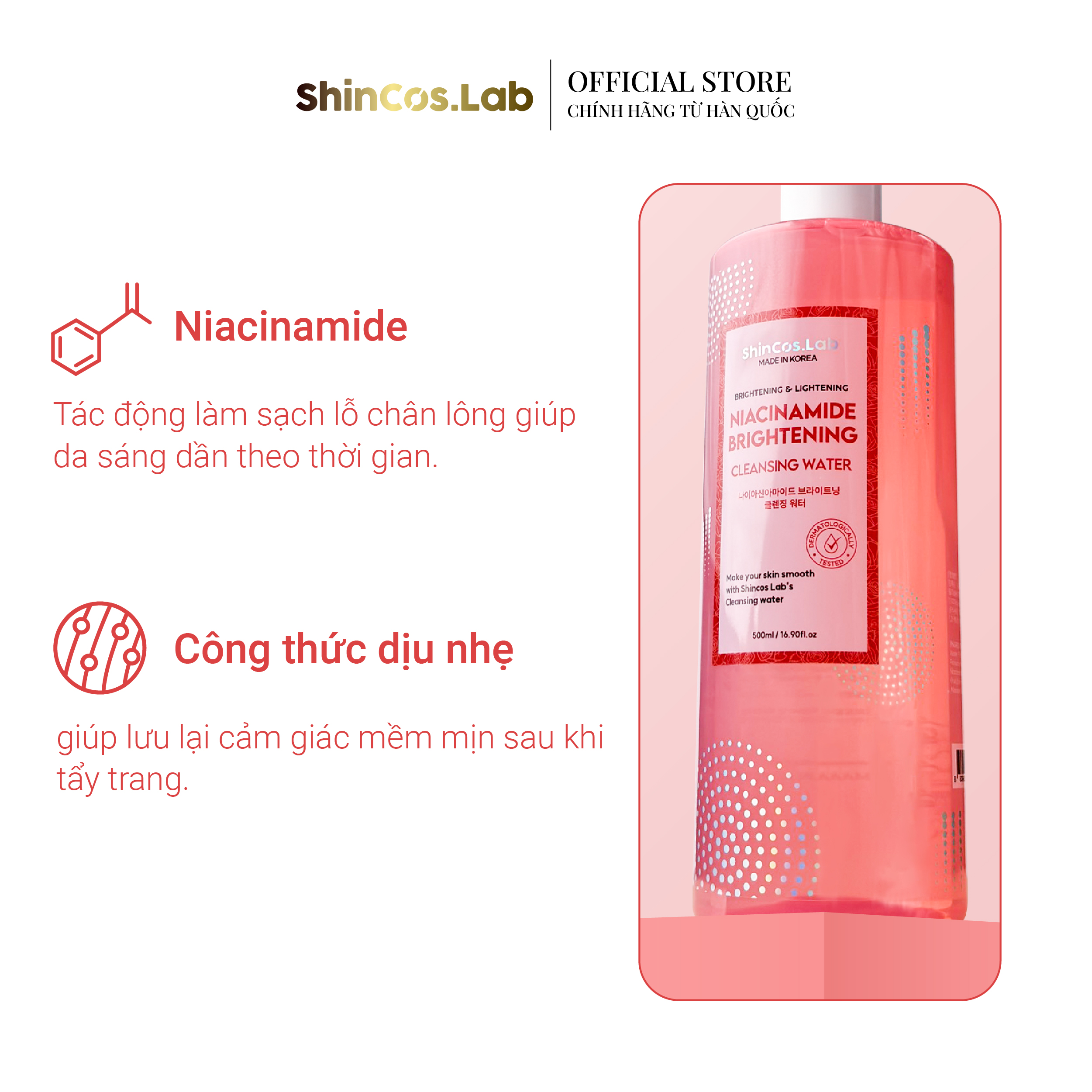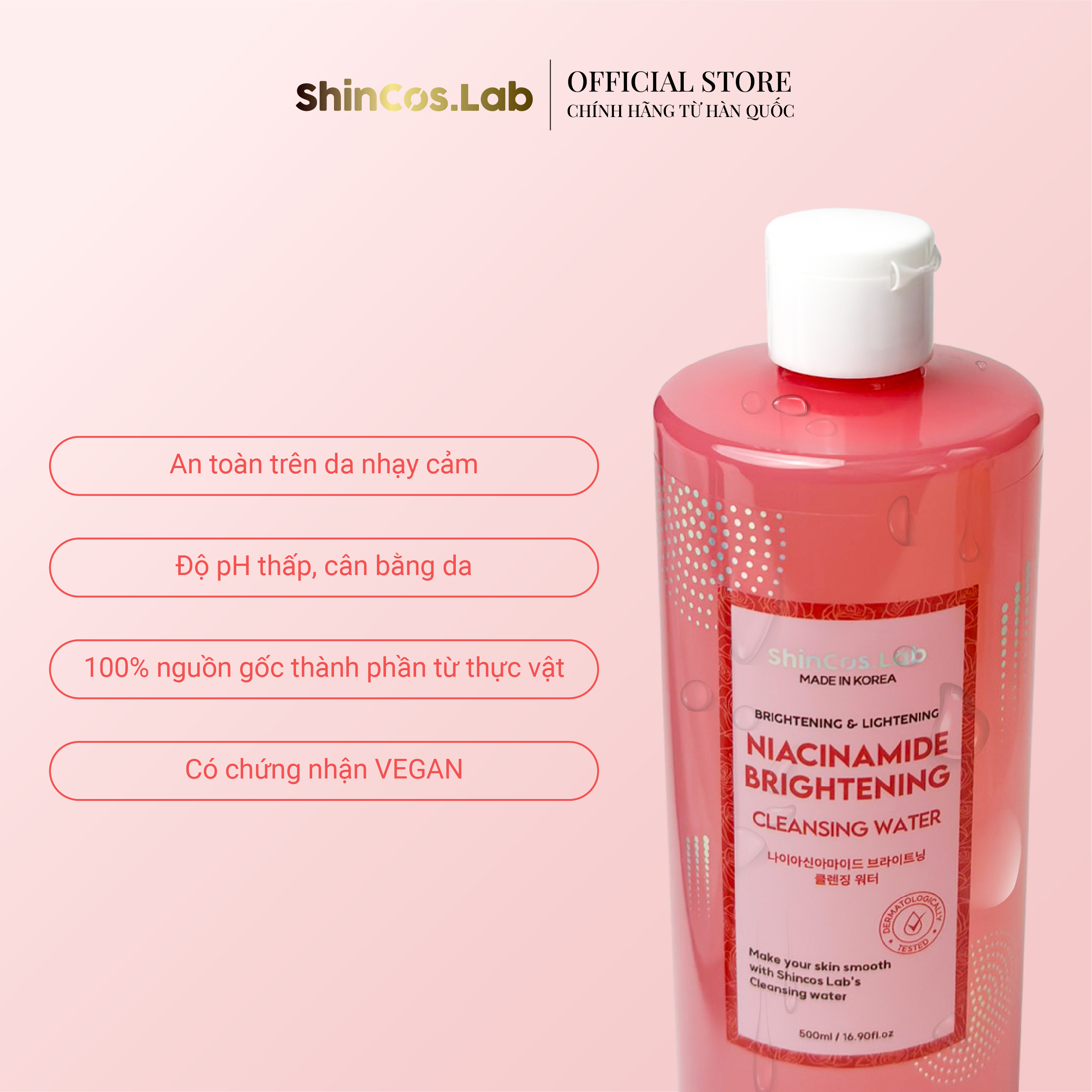 Nước tẩy trang thuần chay sáng da SHINCOS.LAB Niacinamide Cleansing Water