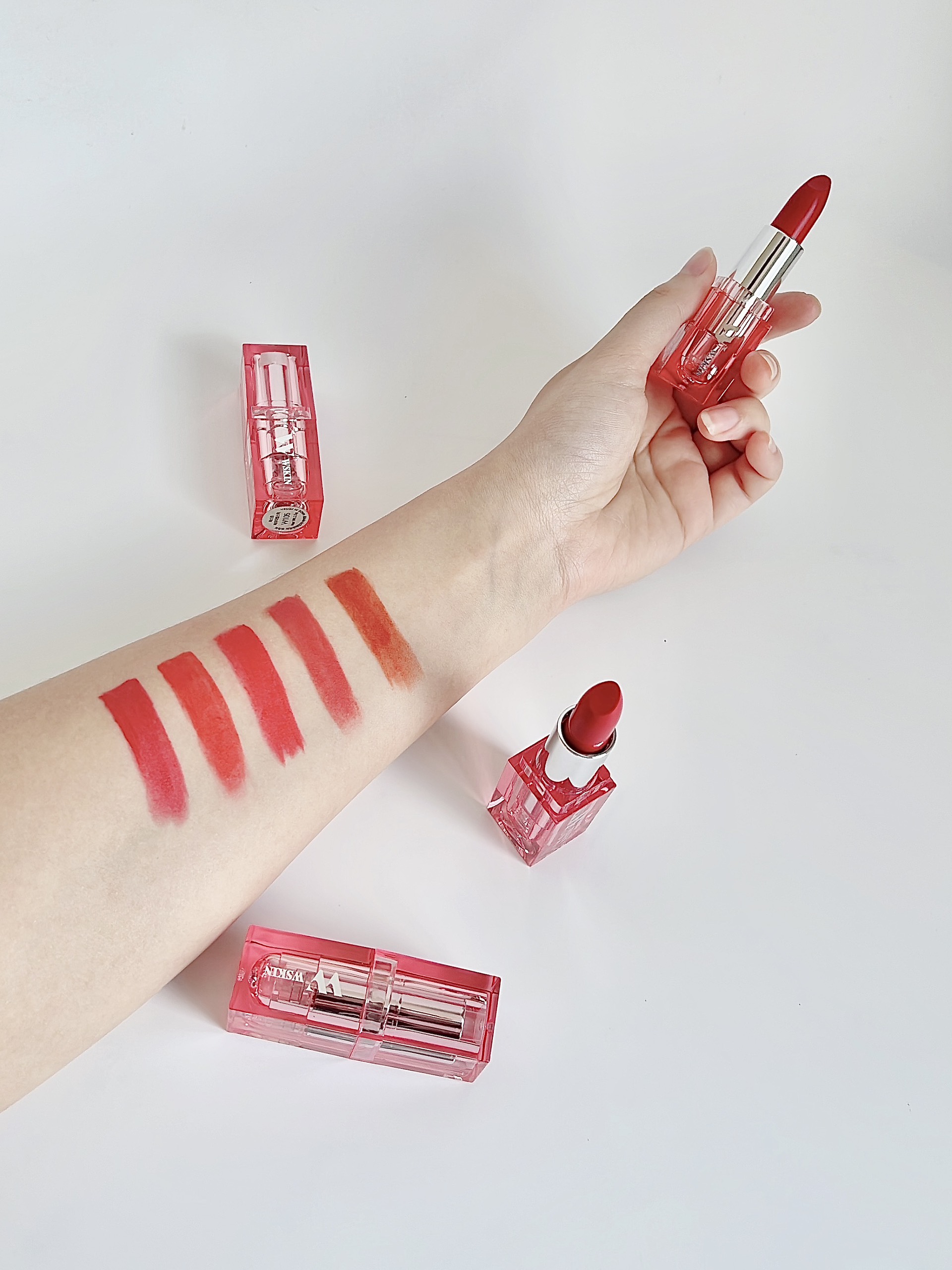| Bảng màu | #W01 Gloaming: Cam cháy, #W02 Rosemance: Hồng đất, #W03 Energetic: Đỏ tươi, #W04 Adore: Đỏ cam, #W05 Confident: Đỏ đất, #W06: Seoul Rose: Đỏ cam cháy |