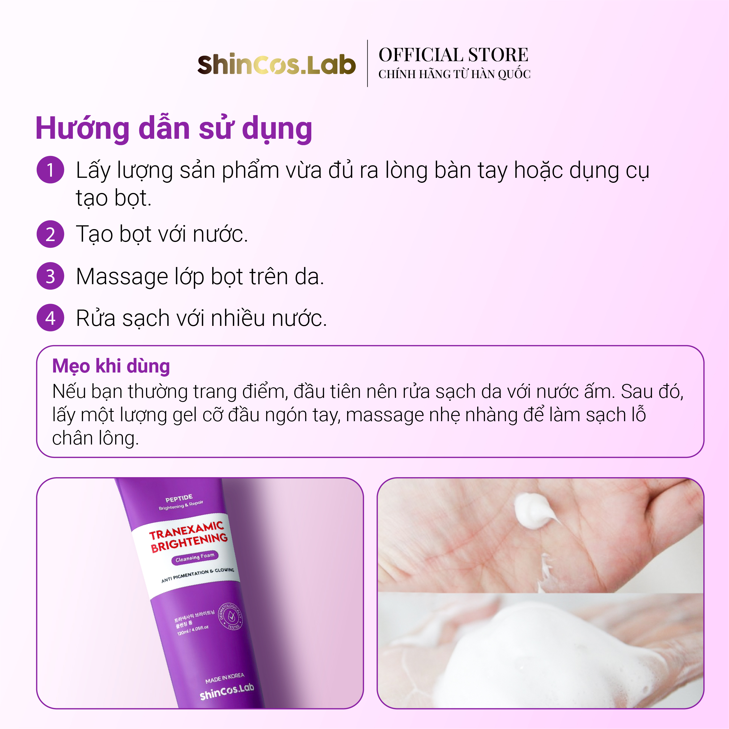 Sữa rửa mặt ngừa nám thuần chay SHINCOS.LAB Tranexamic Brightening