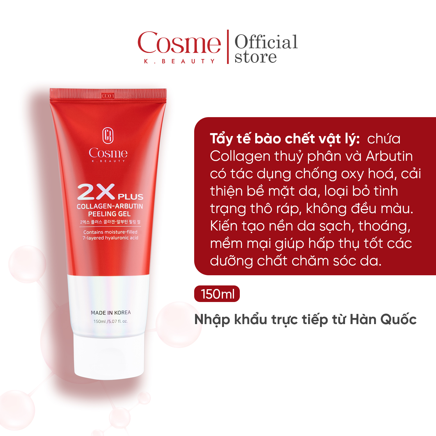 Tẩy tế bào chết làm sáng da COSME 2X Plus Collagen Arbutin Peeling Gel