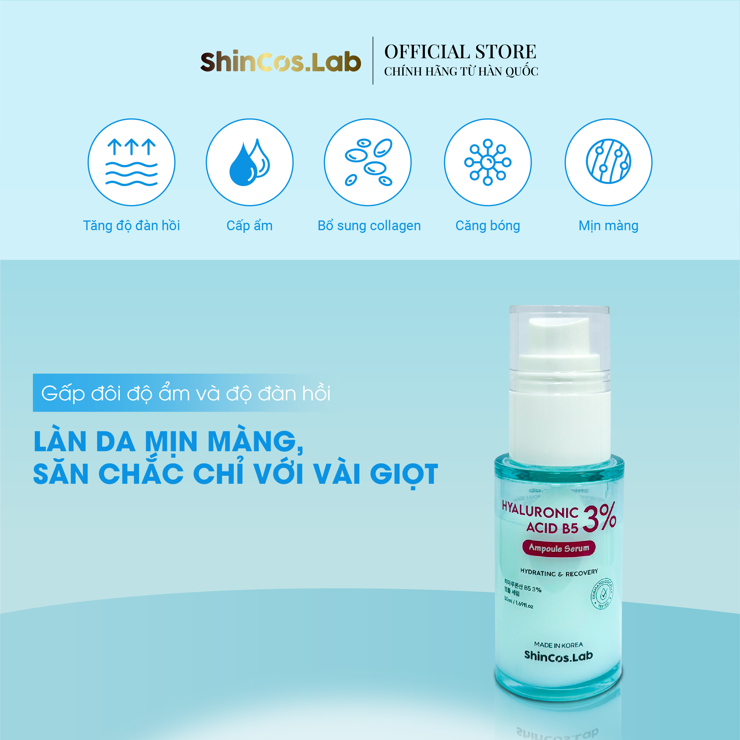 Serum cấp ẩm sâu – Tái tạo phục hồi da – Dưỡng sáng – Mờ thâm – Giảm nám SHINCOS.LAB HYALURONIC PANTHENOL B5 3%