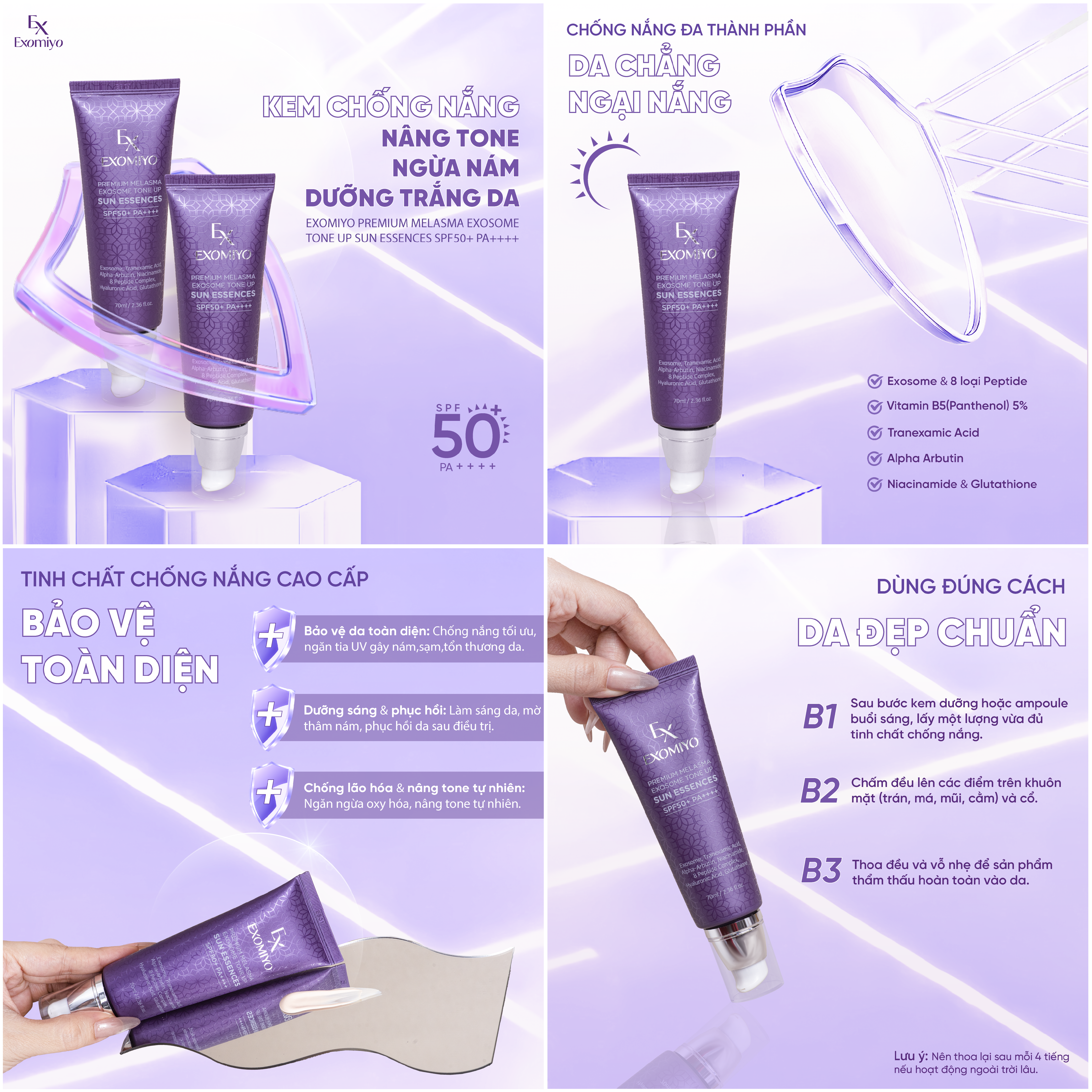 Tinh chất chống nắng Exosome nâng tone ngừa nám cao cấp Exomiyo Premium Melasma Exosome Tone Up Sun Essences
