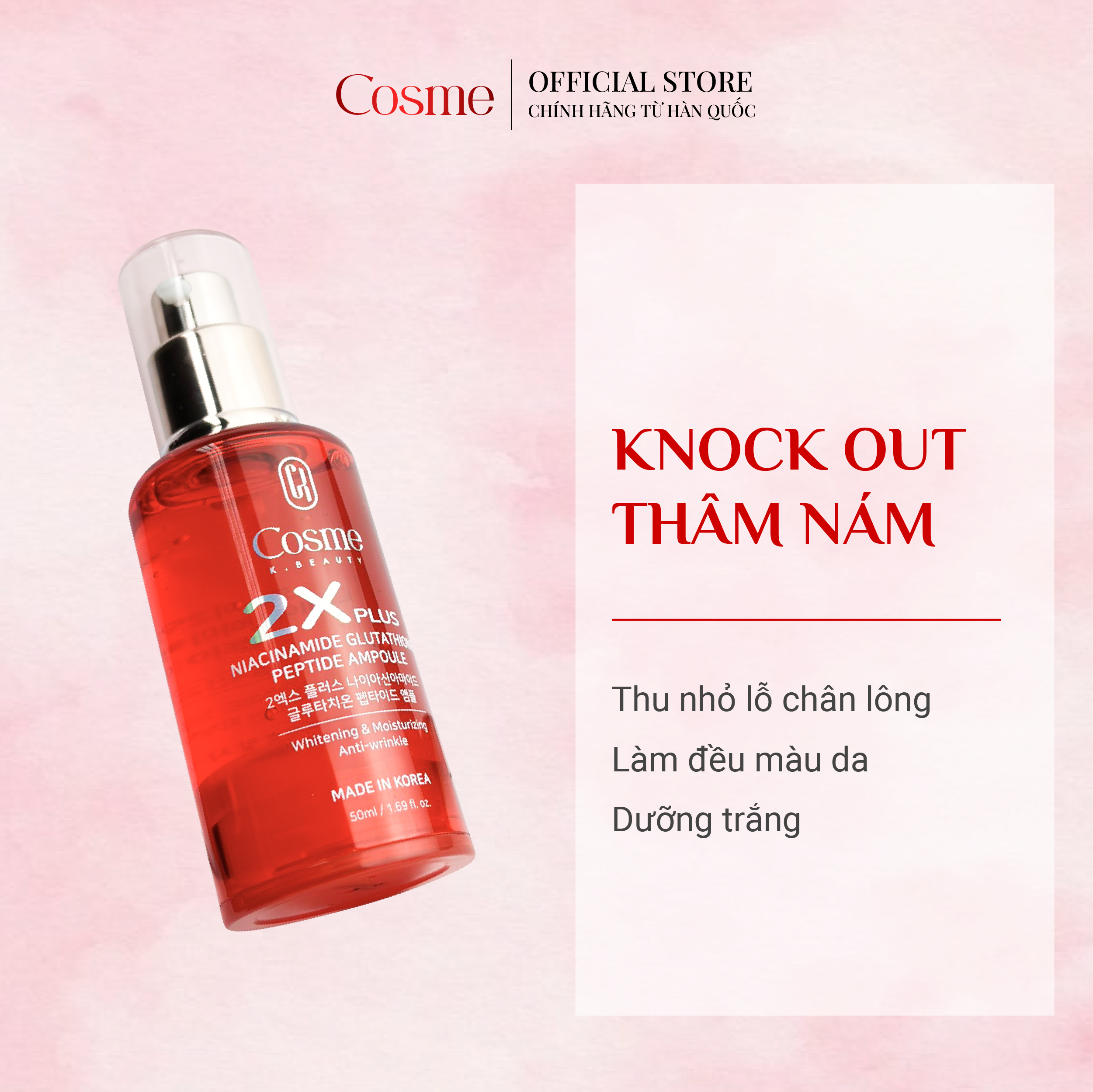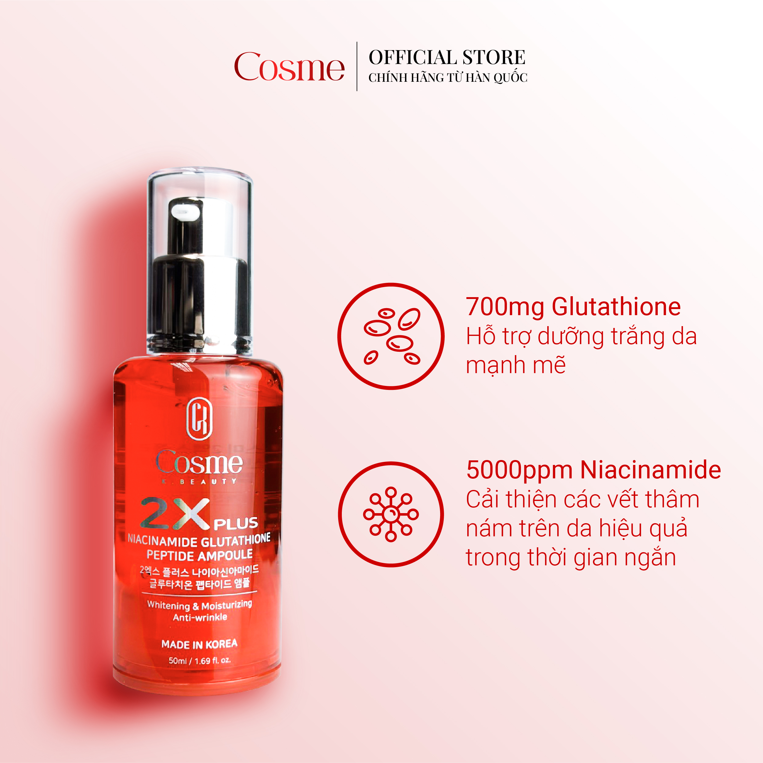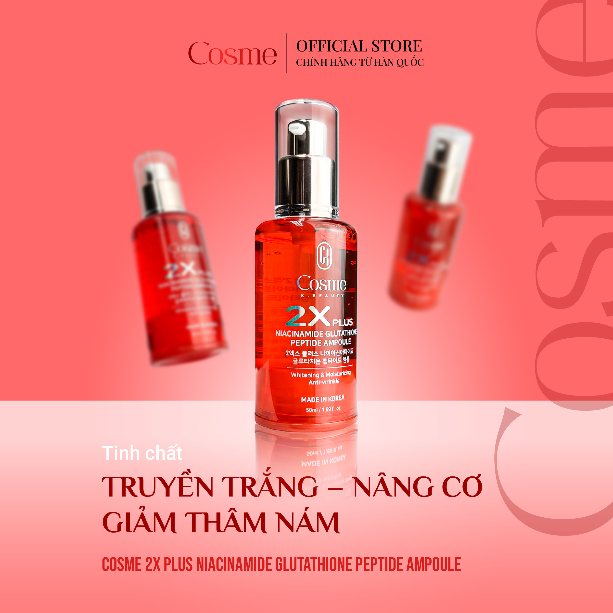 TINH CHẤT TRUYỀN TRẮNG – NÂNG CƠ – GIẢM THÂM NÁM COSME 2X PLUS NIACINAMIDE GLUTATHIONE PEPTIDE AMPOULE